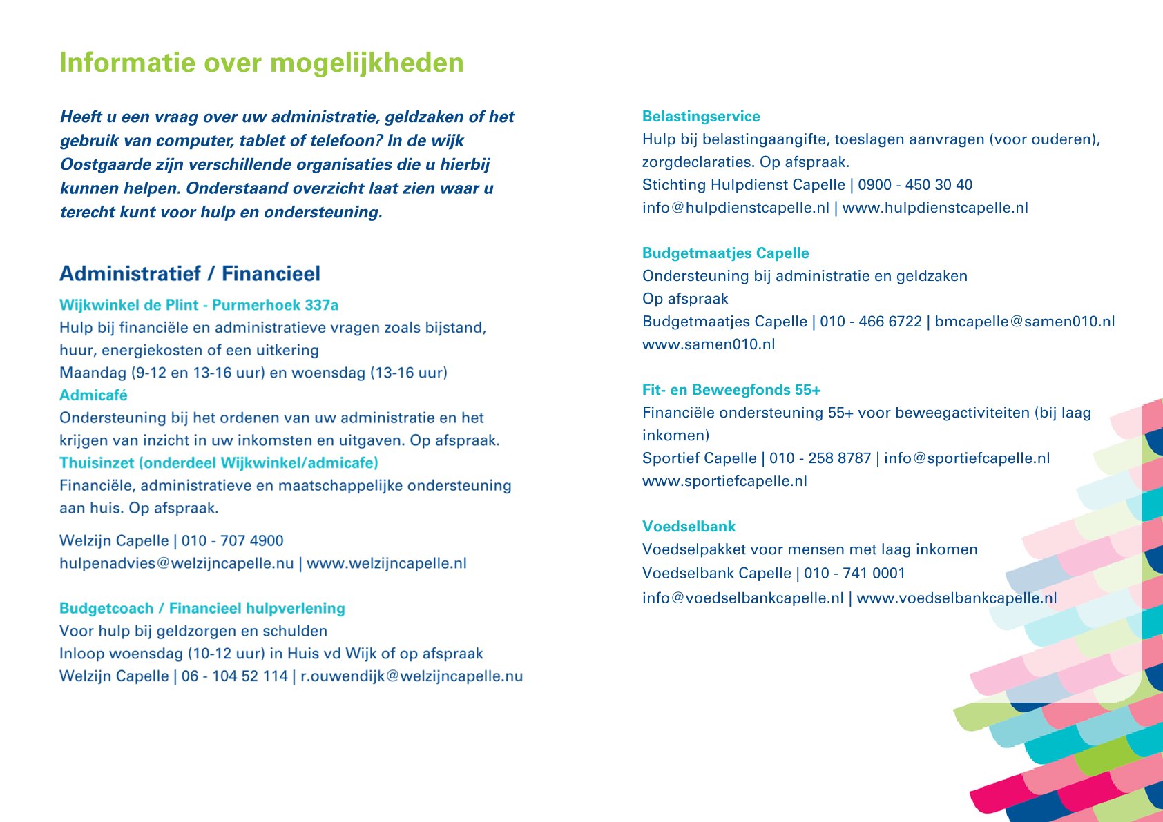 Versie 2026 van de 'Wegwijzer Senioren Oostgaarde' is uit! De Wegwijzer is een uitgebreid overzicht van activiteiten, producten en diensten in de wijk Oostgaarde in Capelle a/d IJssel. Het doel is het krijgen van een beter inzicht in het aanbod voor senioren in de wijk.